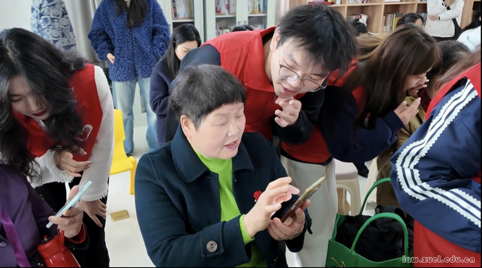 在“e课堂”场景化教学体验环节,法学院志愿者协会VAL法律志愿服务团深度融合智慧助老与公共法律服务,开设专属智能手机应用工坊。针对老年朋友学习特点,团队借助可视化教学工具打造“初阶—中阶—高阶”三阶梯度分层教学体系。从手机基础操作到短视频拍摄与剪辑,层层递进开展教学。社区李奶奶在志愿者耐心指导下成功完成第一条短视频作品,她感慨:“今天大学生手把手地教学,我不仅学会了新技能,还特别有成就感!”