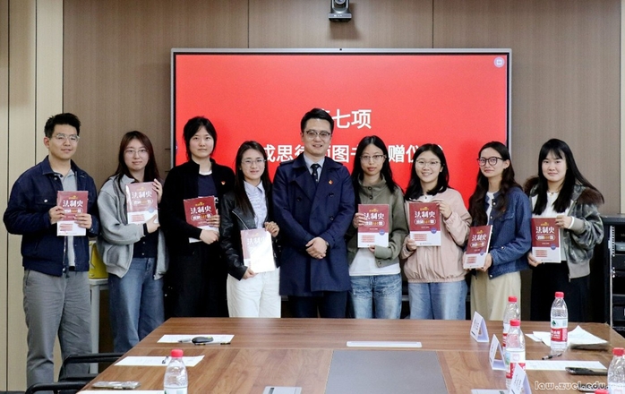 活动最后,龚成思律师向法学院本科生第一党支部捐赠300本自己编著的《法制史速刷660题》,以实际行动助力法学学子专业学习,勉励同学们深耕法律专业知识、持续提升专业素养,早日投身法治建设事业。