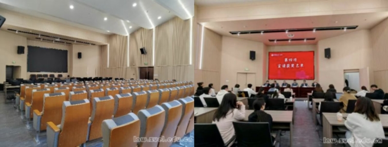 建筑面积约244.71平方米,座位数216席。作为校、院举办重大讲座、学术会议等高端学术与文化活动的主阵地,无数法学前沿的对话与争鸣,皆以此为原点,辐射更远的未来。