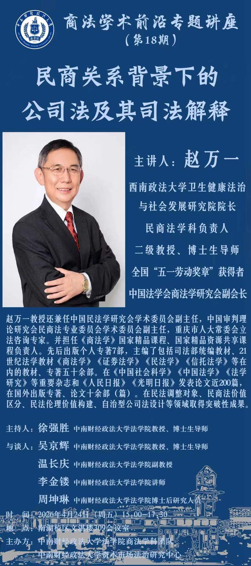 赵万一,西南政法大学卫生健康法治与社会发展研究院院长,民商法学科负责人,二级教授、博士生导师,全国“五一劳动奖章”获得者,