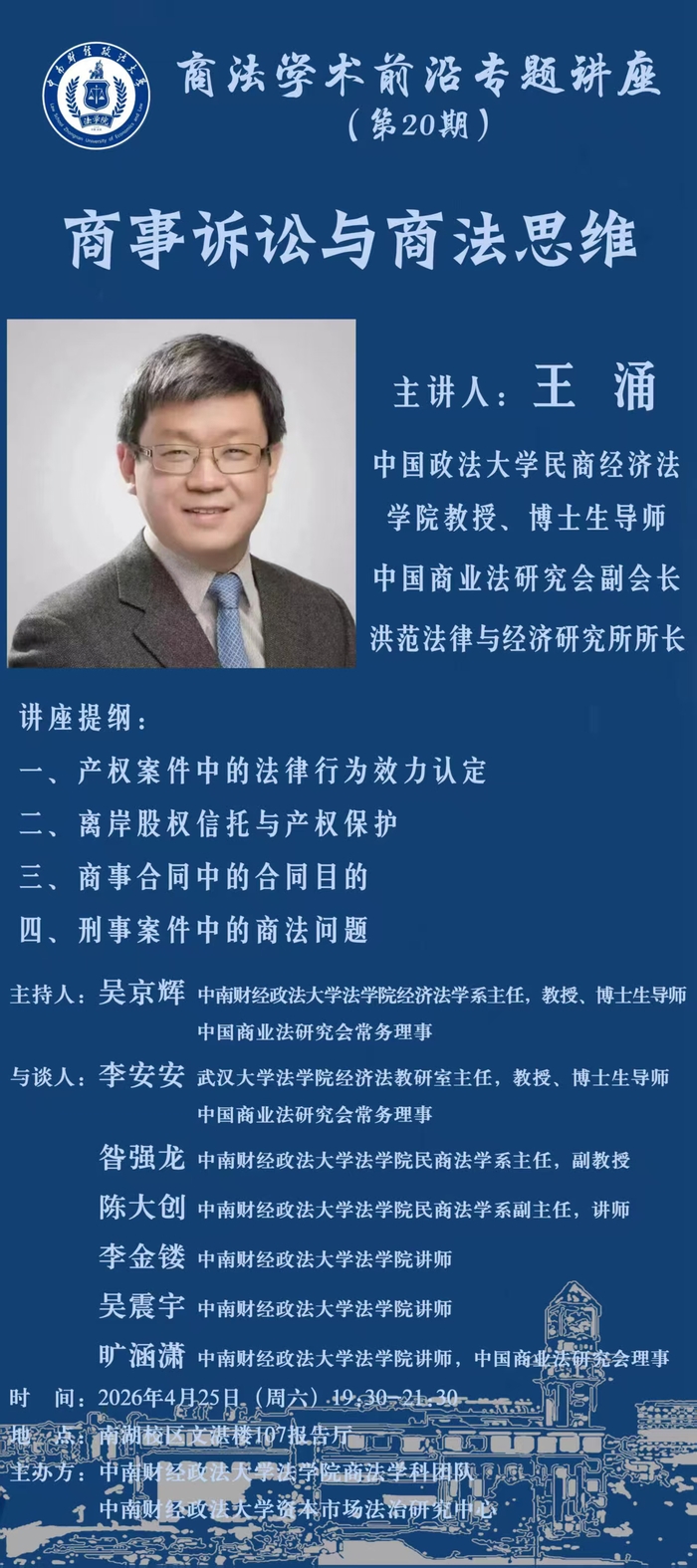 王涌,中国政法大学民商经济法学院教授、博士生导师,中国商业法研究会副会长,洪范法律与经济研究所所长