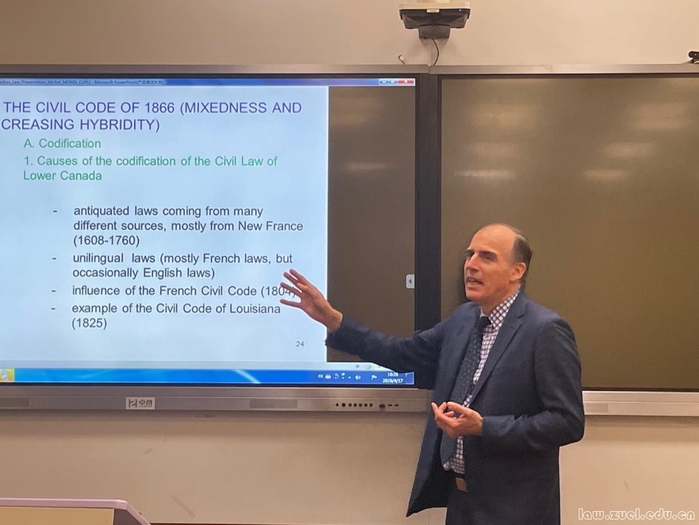 Michel Morin教授首先界定了魁北克法系的三个核心特征,并解析了魁北克法系从混合性、杂糅性到融合性的演进历程,接着分析了加拿大宪法对联邦与立法权的划分,特别是对魁北克司法体系的影响,介绍了1994年《魁北克民法典》的创新与融合,探讨了民法典现代化改革对其行政法的影响。