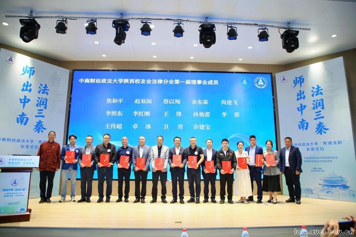 4月18日,由中南财经政法大学法学院、中南财经政法大学陕西校友会联合主办的【师出中南 法润三秦】中南财经政法大学“南湖法韵”长安论坛在西安成功举办。本次论坛以研讨法学前沿问题、服务法治实践为核心,同期举行中南财经政法大学陕西校友会法律分会成立仪式,着力搭建高水平校地法学交流平台,凝聚校友力量,助力区域法治建设高质量发展。